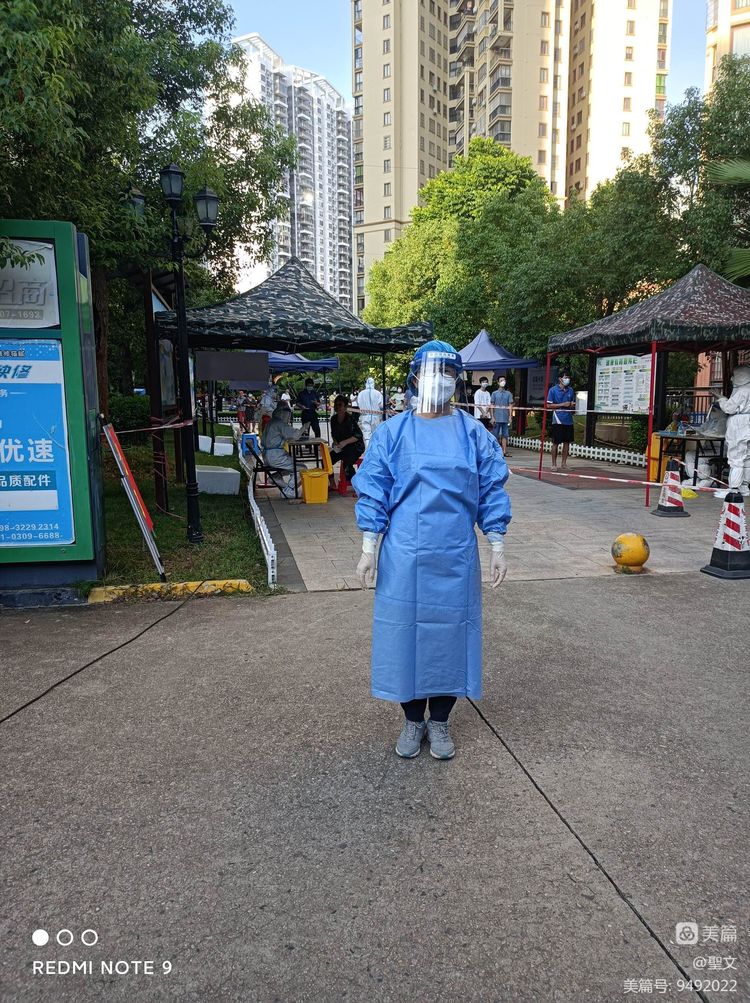 陈文娟同志在同心家园四期小区,负责协助小区核酸检测维护秩序服务工作,严防疫情交叉传播风险。