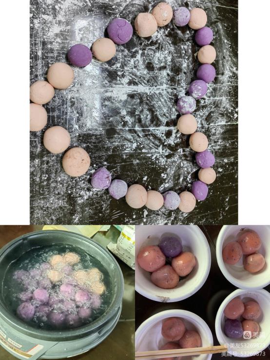 活动现场一派热闹景象,大家有说有笑,纷纷动手起来,有的揉捏糯米粉、有的搅拌多种馅料,黑芝麻馅、花生馅……在现场“点心师”的帮助和指导下,学徒们围着桌子有模有样地包着汤圆,一个个小小的汤圆里包裹着对2023年的美好期望。